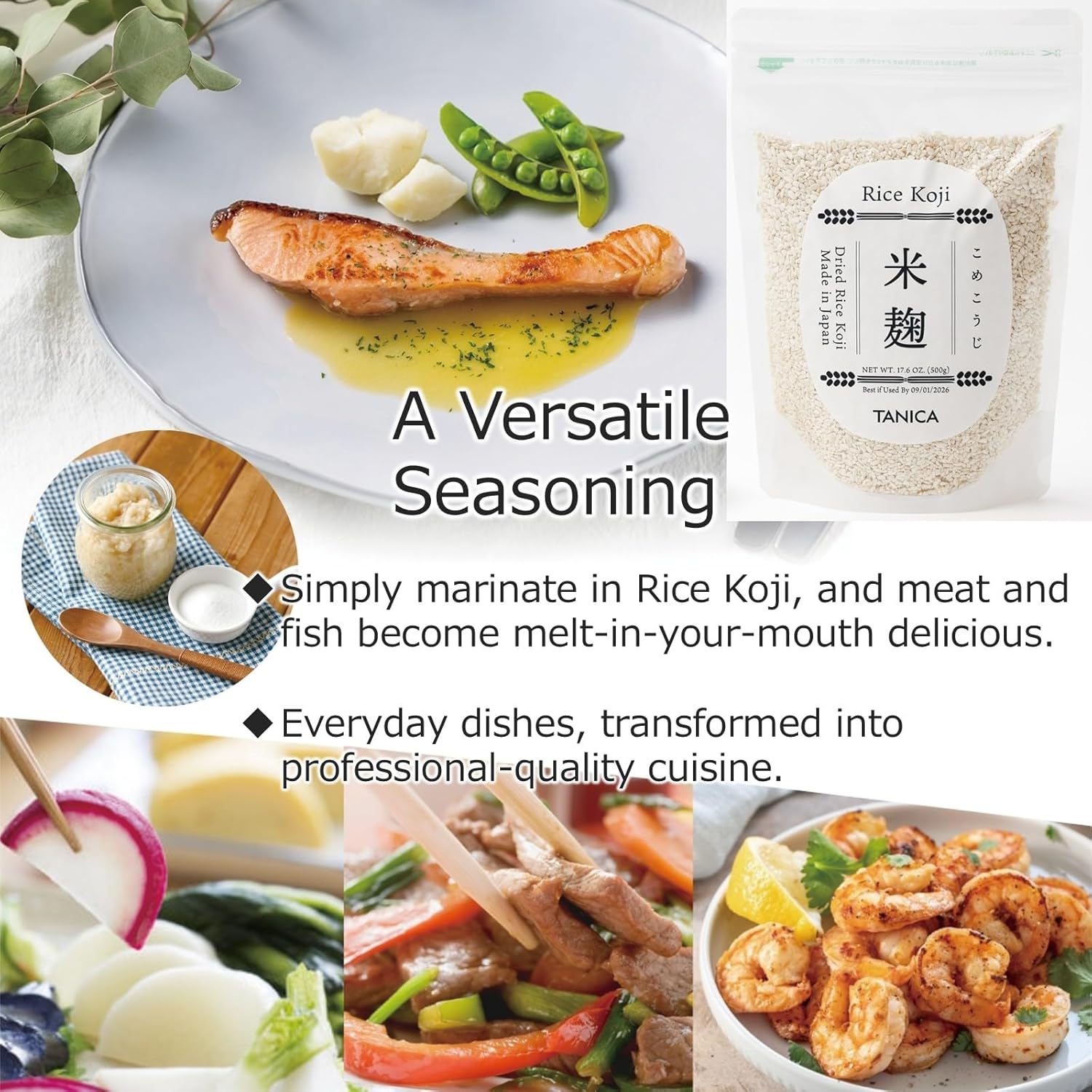 - • When fermented with specific ingredients, Rice Koji enhances Umami and boosts nutrition, making it appealing to those who use it in their food.